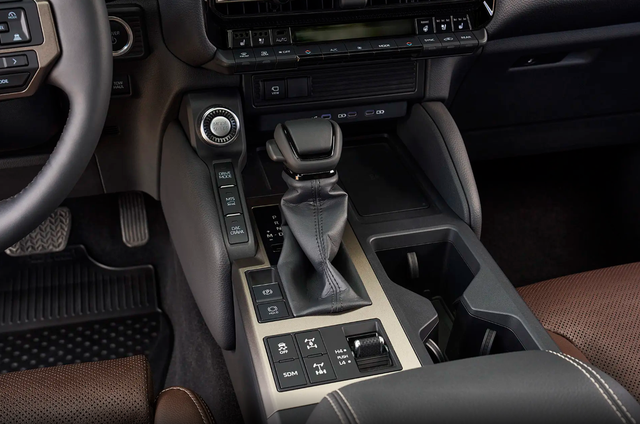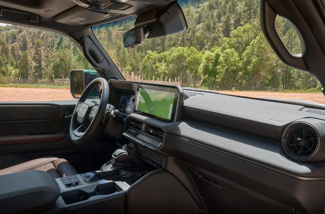 1958特别版内饰由黑色和棕色组成,中控台还保留了大量实体按键,配置方面,提供全液晶仪表,12.3英寸中控屏幕,无线Apple CarPlay,Android Auto,电动尾门,稳定杆断开,多地形选择(MTS),盲点监控,2,400W交流逆变器等配置。