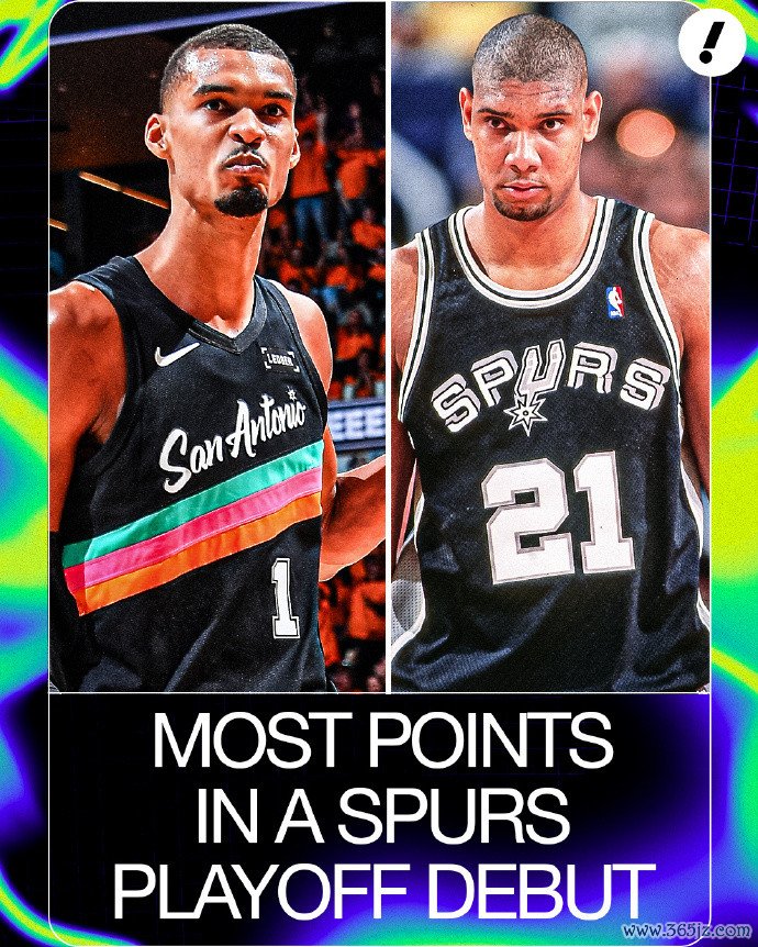 文班今天迎来生涯季后赛首秀,表现相当出色,全场比赛出战33分钟,21投13中,三分6中5,罚球5中4,爆砍35分5篮板2盖帽。值得一提的是,文班亚马的35分打破了邓肯保持的马刺队史季后赛首秀得分纪录(32分),同时也是“天勾”贾巴尔后,中锋球员的季后赛首秀最高得分纪录。贾巴尔在1970年3月26日雄鹿对阵76人的比赛中迎来季后赛首秀,全场25投13中砍下36分。